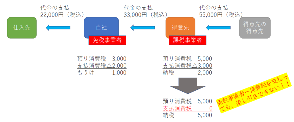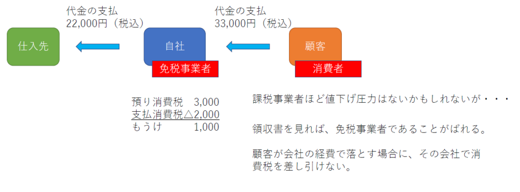 免税事業者の得意先は、免税事業者からの請求書では、支払った消費税を差し引くことができない(仕入税額控除ができない。)ため、納税額が増えてしまいます。