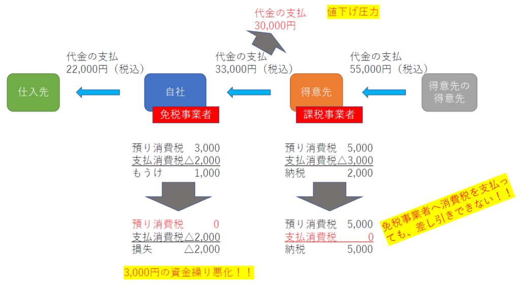 売上代金に含まれていた消費税分値下げをすることで、資金繰りが悪化してしまいます。