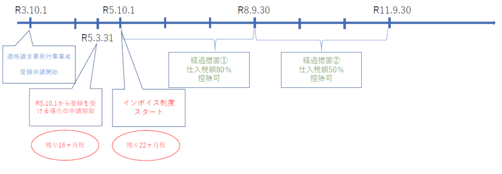 インボイス制度のスタートのタイミングから、適格請求書発行事業者となっているためには、原則、令和5年3月31日までに登録申請をしないといけません。